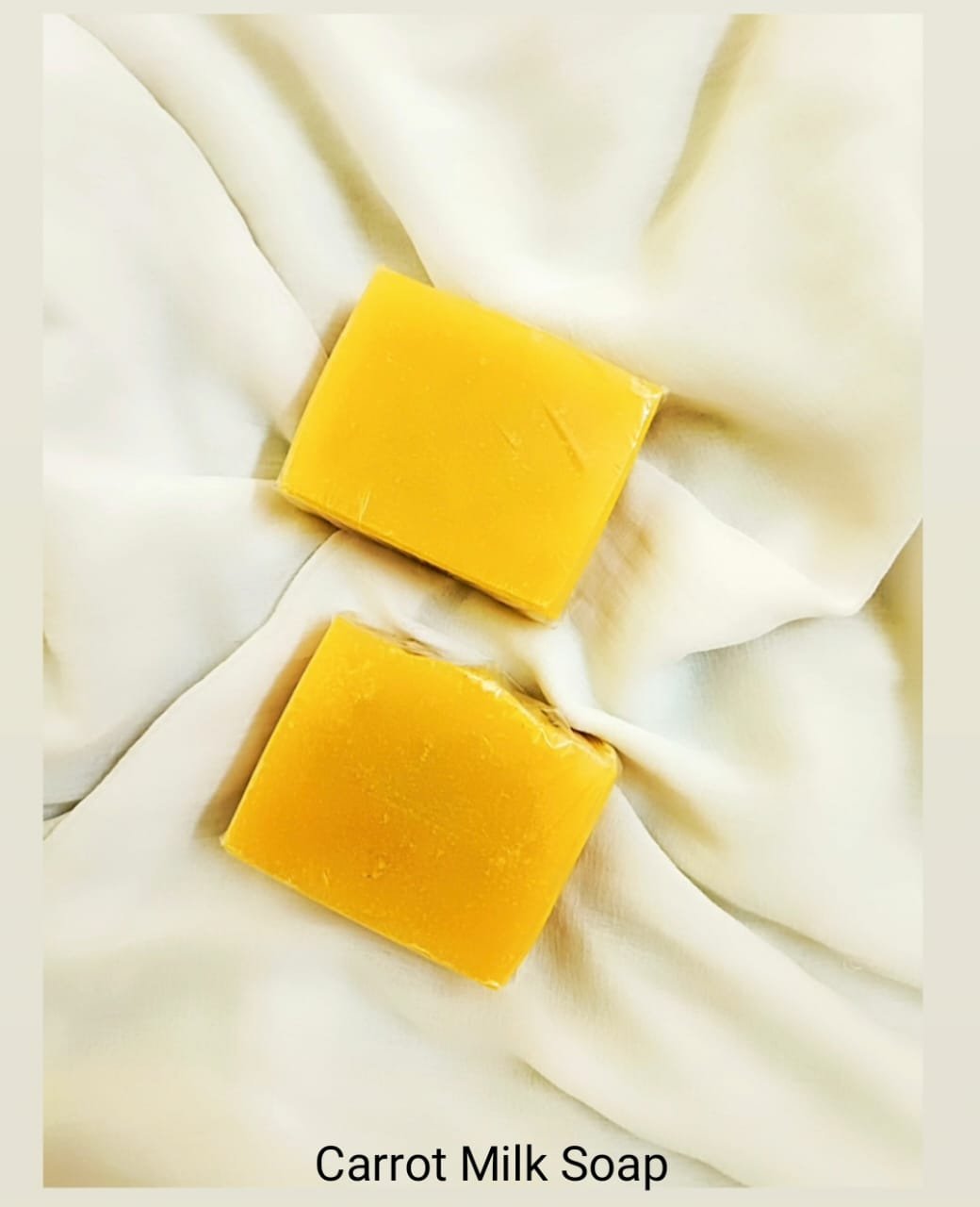Coconut oil, olive oil, castor oil, rice bran oil, Shea butter, carrot seed oil, cow milk, carrot extract, essential oils, NaOH
